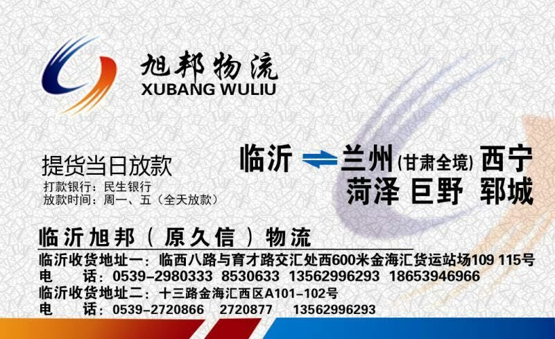 热烈祝贺临沂旭邦物流新开通兰州专线(甘肃全境)