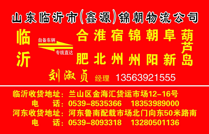 热烈祝贺临沂市(鑫源)锦朝物流公司开通临沂至安徽合肥,淮北,宿州直达专线!